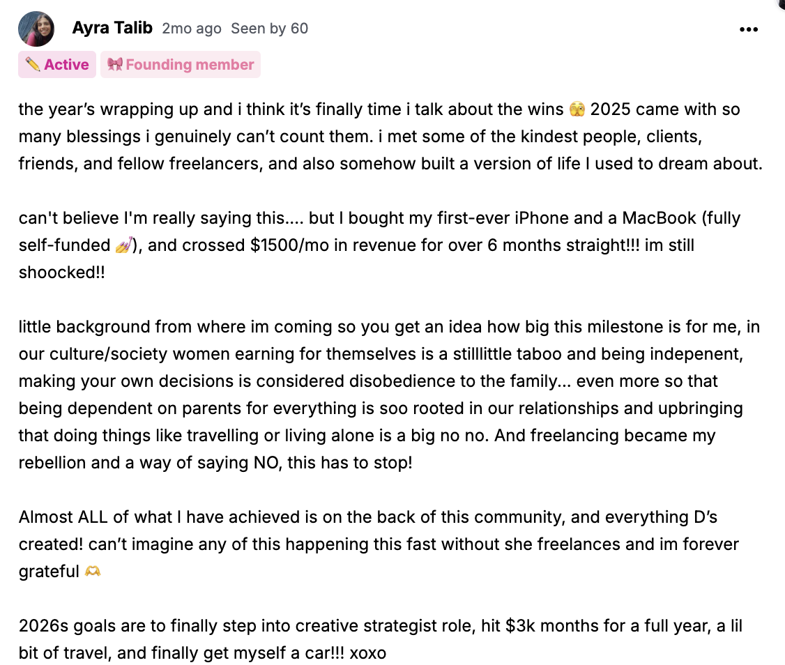 You’re building with real-time feedback, and women who are actually doing the work. That also includes access to platforms and partners built specifically for freelancers.
