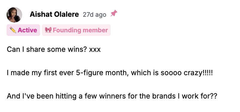 “I went from $5k/m to $15k/month being a part of this community & learning from Denée.”